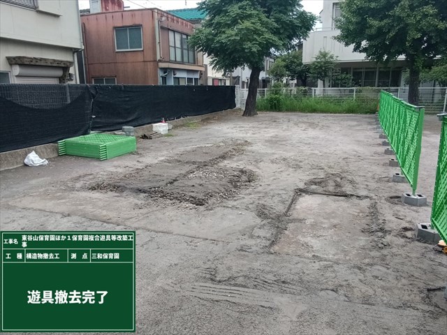 東谷山保育園ほか1保育園複合遊具等改築工事 7月工事進捗24%